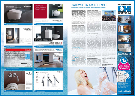 Ostschweizer Hausbesitzer und Wohnungseigentümer richten ihre Blicke nach Arbon! Im Sinne einer noch intensiveren Kundenbetreuung eröffnete die Haustechnik Eugster AG im Erdgeschoss im Grossenbacher-Hochhaus in Arbon Mitte Mai ein neues Badstudio. Ein weiteres ist auch am zweiten bedeutenden Eugster-Standort an zentraler Lage in Romanshorn geplant; dort rechnet Geschäftsführer Daniel Eugster mit einer Eröffnung im Jahr 2017.